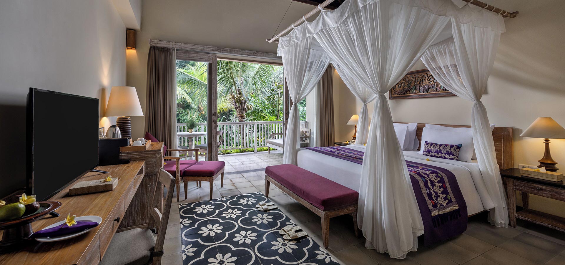 Our suites are meticulously designed in authentic Balinese style, featuring local stones and bamboo, complemented by a collection of hand-carved, white-washed furniture. This design reflects the warm, natural essence of Bali, enhanced by beautiful gardens that incorporate local flora with a touch of luxurious artistry. The extensive use of local materials creates a soothing ambiance that embraces nature while providing a sense of elevated relaxation. Each suite includes a private terrace and a dedicated dining table, inviting you to unwind in complete tranquility. This serene environment ensures a truly calming experience, perfect for indulging in relaxation and rejuvenation.